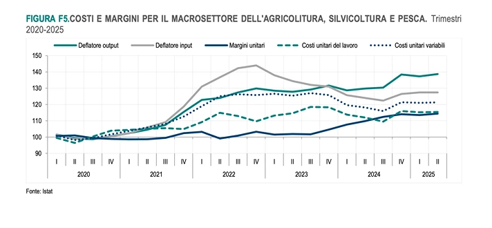 Nel corso del 2024, in presenza di una moderazione dei prezzi degli input, i margini nel settore agricolo hanno recuperato e nella prima metà del 2025 si sono stabilizzati su livelli più elevati rispetto alla media degli ultimi dieci anni. Dagli inizi del 2024, la dinamica del prezzo dell’output è rimasta sempre al di sopra di quella del prezzo dell’input.