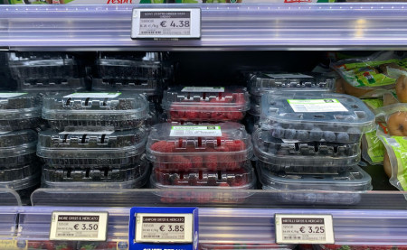 E dei prezzi: giù i mirtilli (15,87 euro/kg) su i lamponi (25,18 euro/kg). Ribes rosso grande assente