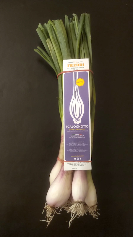 Innovazione di prodotto in casa Freddi. L'azienda reggiana, dopo alcuni test, ha lanciato in questi giorni il cipollotto da scalogno (o scalognotto). Di fatto uno scalogno coltivato in Calabria e raccolto fresco, non lasciato maturare e seccare. Ecco che così il colore vira al rosa, ulteriore carattere distintivo rispetto al bianco nocerino Dop e al rosso di Tropea Igp.
