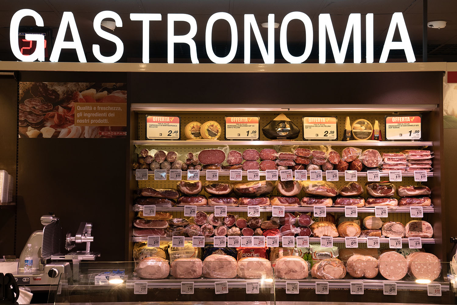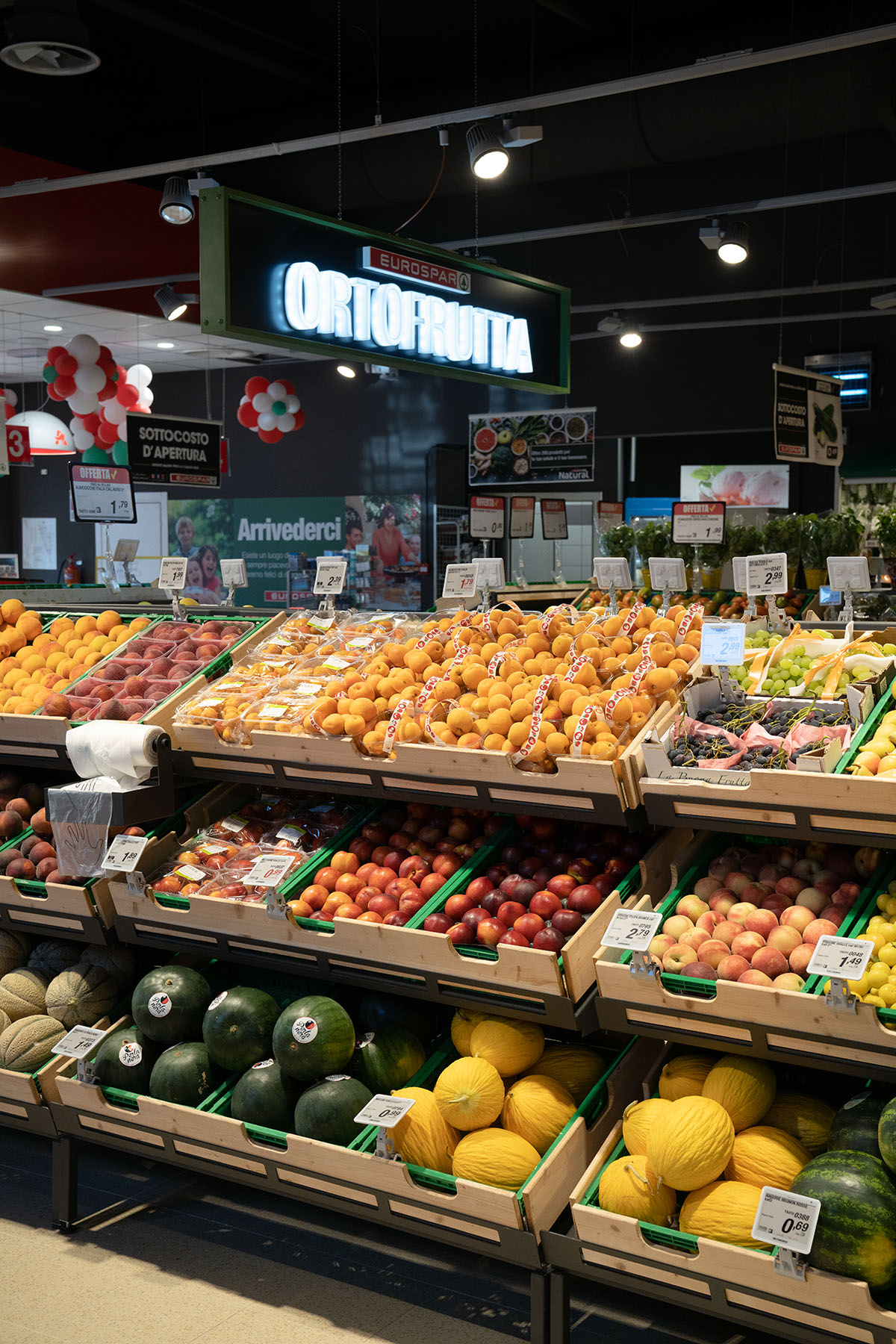Il moderno punto vendita è aperto al pubblico in una veste rinnovata, personalizzata con il concept Eurospar. Numerosi i reparti a disposizione della clientela, come la Gastronomia calda servita e un’apposita area ristoro, Macelleria, Panetteria, Ortofrutta e il reparto Enoteca.