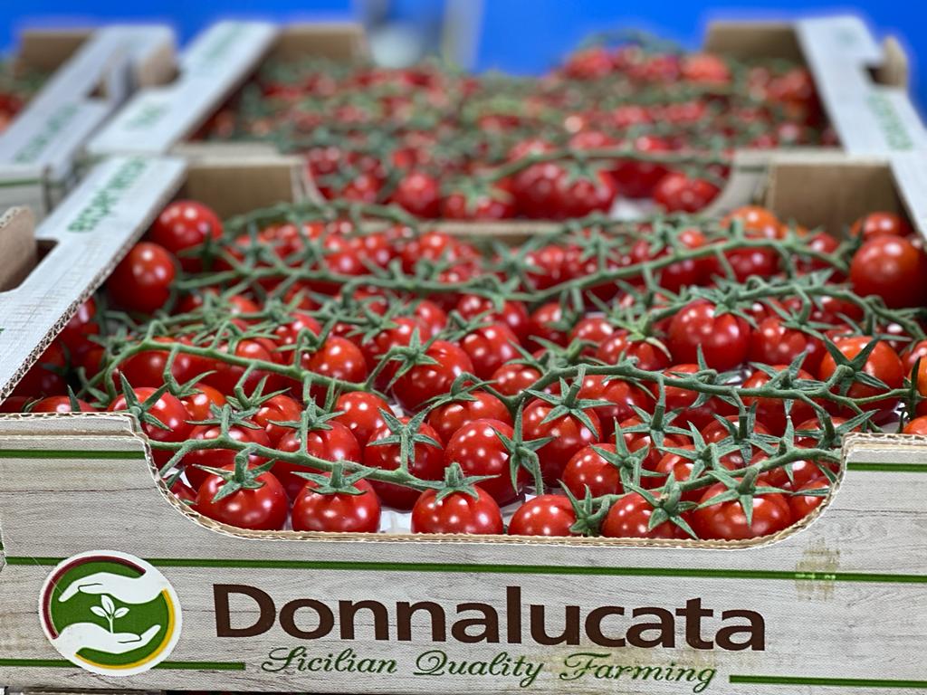 La cooperativa Donnalucata illumina con la luce della Sicilia il reparto ortofrutta della Grande distribuzione organizzata. Un'immagine che rimanda al clima mite dell'isola mediterranea e alle condizioni ambientali isolane che garantiscono, ai cittadini delle regioni più fredde, il consumo, anche in inverno, di prodotti come il pomodoro datterino giallo.