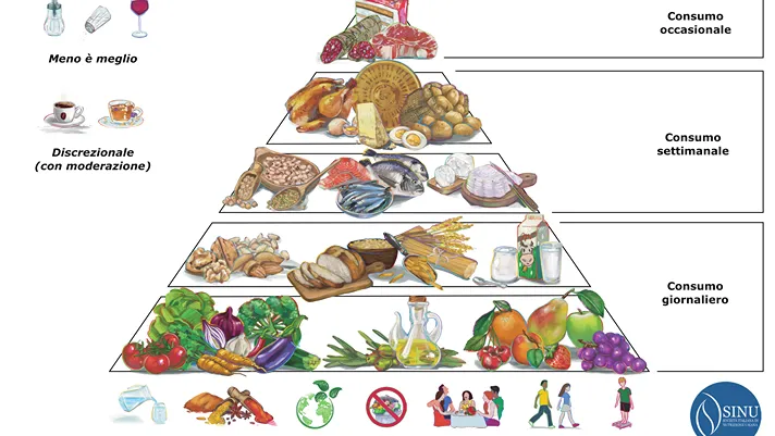 Solo occasionale il consumo di carene rossa e zuccheri aggiunti. Tutto l'approccio è orientato verso la sostenibilità. L’aggiornamento è stato realizzato sulla base di una serie di dati e documenti scientifici come il documento Fao-Oms sulle diete sane e sostenibili, le linee guida per una sana alimentazione italiana redatte dal Crea e i livelli di assunzione di riferimento di nutrienti per la popolazione italiana (Sinu, Larn - V revisione).