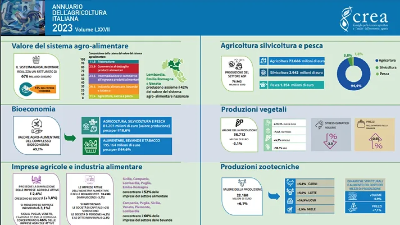 L’Annuario dell’agricoltura italiana, realizzato dal Crea con il suo Centro politiche e bioeconomia, restituisce ogni anno, da 77 anni, una fotografia del settore agricolo nazionale dettagliata, per comprendere fenomeni e dinamiche in atto, sia a livello regionale, sia nel più ampio contesto nazionale e globale