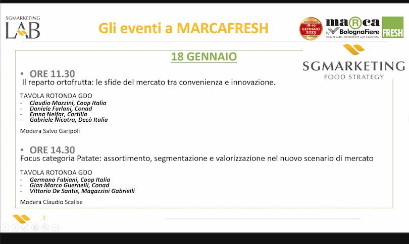 Nel reparto ortofrutta non si parla più di prodotti a marchio, portatori di un semplice bollino, ma di marche vere e proprie. Anzi, l'ortofrutta fa da volano, un esempio che traina tutta la trasformazione nel mondo della marca privata. Sono solo alcuni spunti scaturiti dal webinar “Andamento dei consumi, impatto dell'inflazione e ruolo della Mdd per il comparto ortofrutta“, organizzato in attesa della 19esima edizione di Marca by BolognaFiere, in programma il 18 e 19 gennaio 2023.