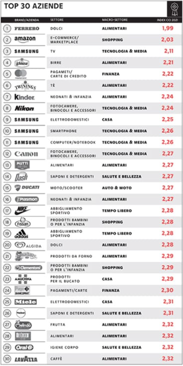 La ricerca, condotta nel mese di febbraio di quest’anno, si basa su un sondaggio online (metodo Cawi) che ha raccolto 870mila giudizi di clienti su 95 settori dell’economia italiana, totalizzando in media quasi 900 voti per ogni insegna.