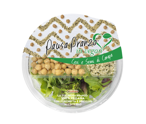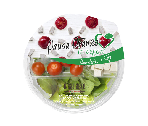 “Nel 2016, è stato rilevato che i vegetariani ed i vegani nel mondo sono almeno un miliardo e stanno aumentando in molti paesi, per questo motivo OrtoRomi, cooperativa agricola leader nel settore ortofrutticolo, sempre attento alle tendenze dell'easy food e a soddisfare le richieste del mercato, presenta la nuova linea di Pausa Pranzo In Vegan con arricchitori 100% vegani, originali e dal gusto leggero“.