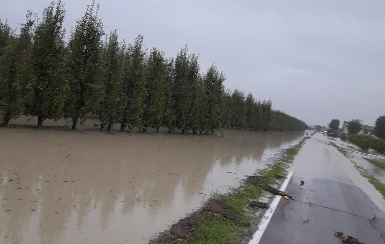 in campo anche i tecnici di Confagricoltura: "Colpito gravemente il comparto agricolo: vigneti e frutteti sommersi, con alberi carichi di frutti ancora da raccogliere (uva, pere, mele, kiwi, ecc.), oltre alle orticole in campo in particolare le varietà tardive del pomodoro da industria e le barbabietole da zucchero".