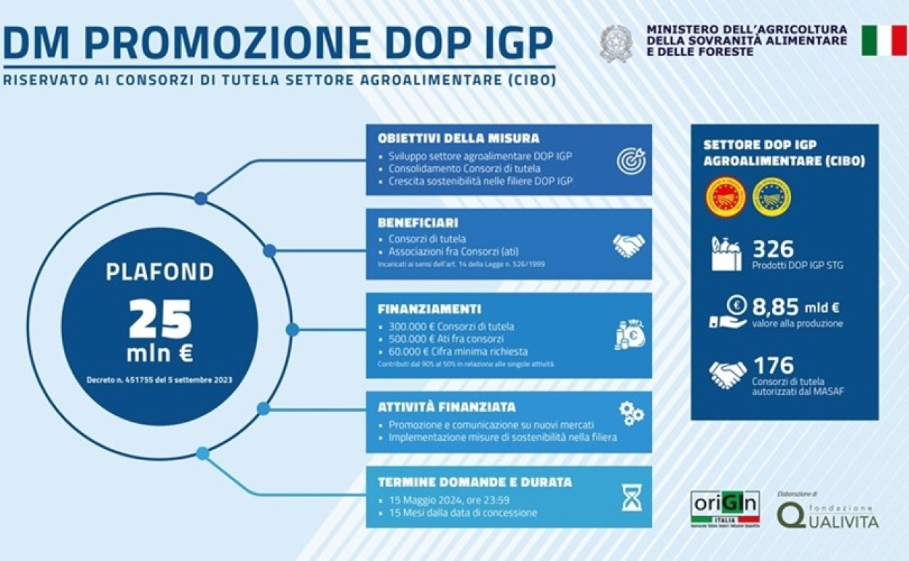 Presentato oggi durante il tavolo di lavoro tra Origin Italia e ministero dell’Agricoltura, della sovranità alimentare e delle foreste il decreto ministeriale promozione che assegna alle filiere Dop e Igp risorse per 25 milioni per promozione nazionale e internazionale e misure di sostenibilità.