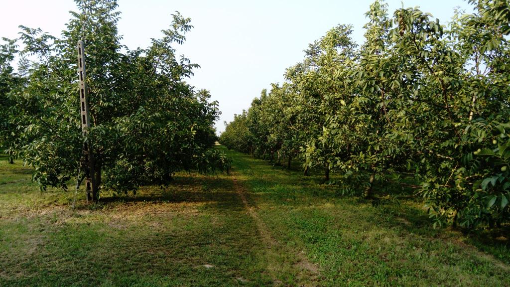 La scelta varietale delle noci impiantate è stata ben precisa. “Per la gran parte – ha proseguito Luca Venturoli – abbiamo piantato Chandler, metà in innesto e metà a meristema, per poterci garantire un po’ di produzione già dai primi anni. L’innesto, infatti, produce prima rispetto al meristema, ma non è sempre stabile. La Chandler a innesto sta già dando buoni risultati. La varietà Howard, invece, che abbiamo in quantità decisamente minore, quest’anno ha registrato una forte cascola dei frutti”.