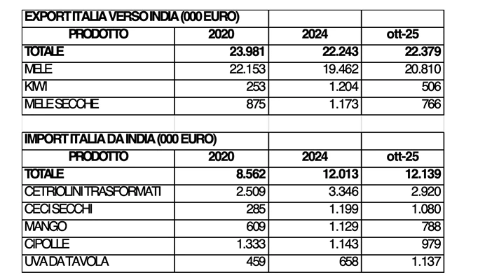 "C’è poi un problema di tempi, per una deregulation definitiva, si prevede che ci vorranno infatti 5/10 anni - sottolinea - Oggi il prodotto italiano più esportato in India è di gran lunga la mela".