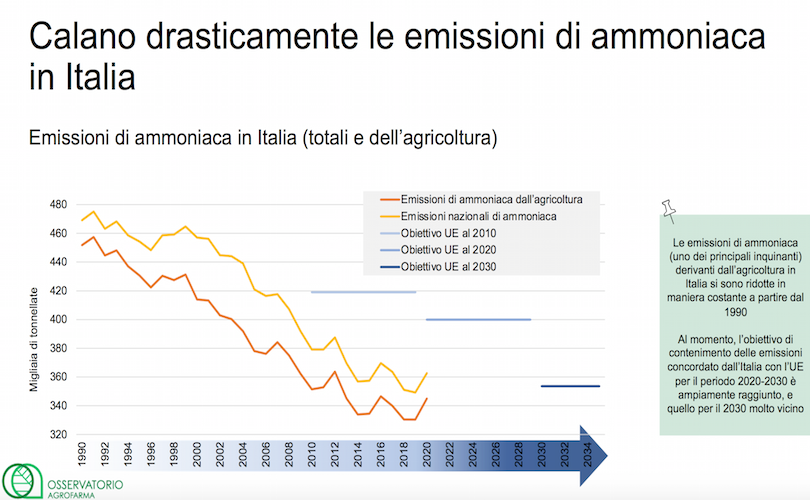 “Il nostro obiettivo è far parlare i dati in maniera semplice – ha puntualizzato Gentile – Gli indicatori agroambientali analizzati raccontano un’agricoltura che sta riducendo le emissioni in atmosfera a fronte di rese produttive inalterate. Le emissioni di ammoniaca, per esempio, in Italia sono già al di sotto dell’obiettivo che l’Ue si è fissata per il 2030”.
