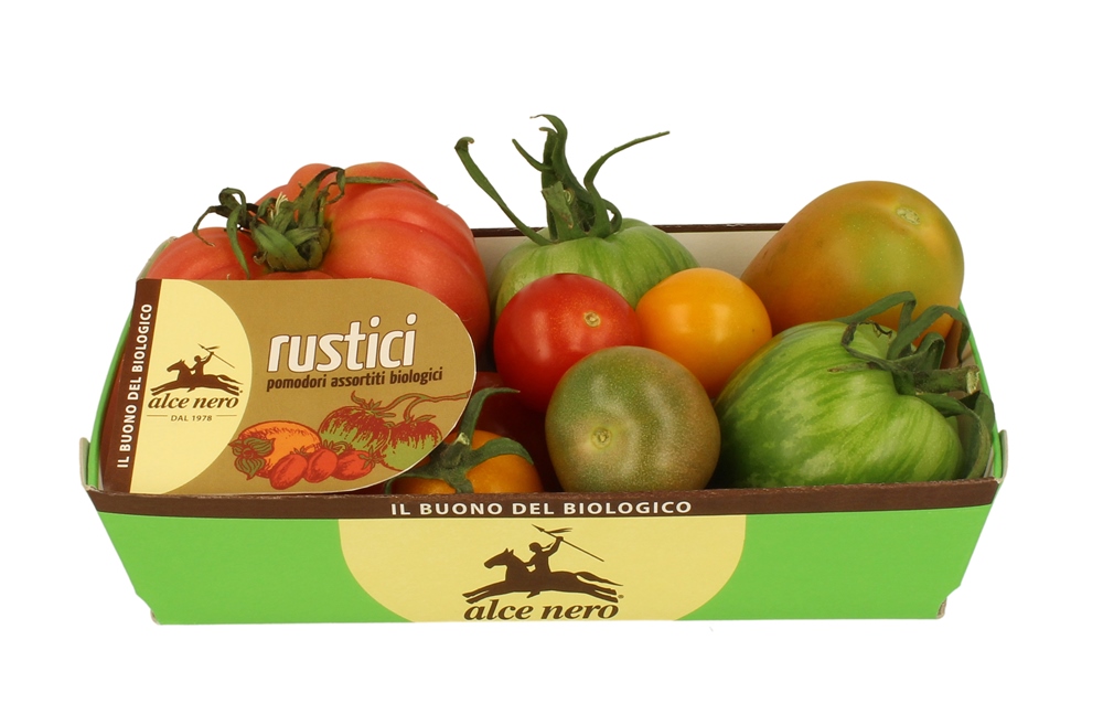 “Non meno interessante è la proposta dei pomodori “Rustici”, un originale assortimento di pomodori di varietà non comuni, tra cui il cuor di bue rosa, i frutti a pera rossi, i ciliegini gialli e neri e una vera rarità come il pomodoro giallo striato di verde, variopinta testimonianza della grande biodiversità colturale italiana”.