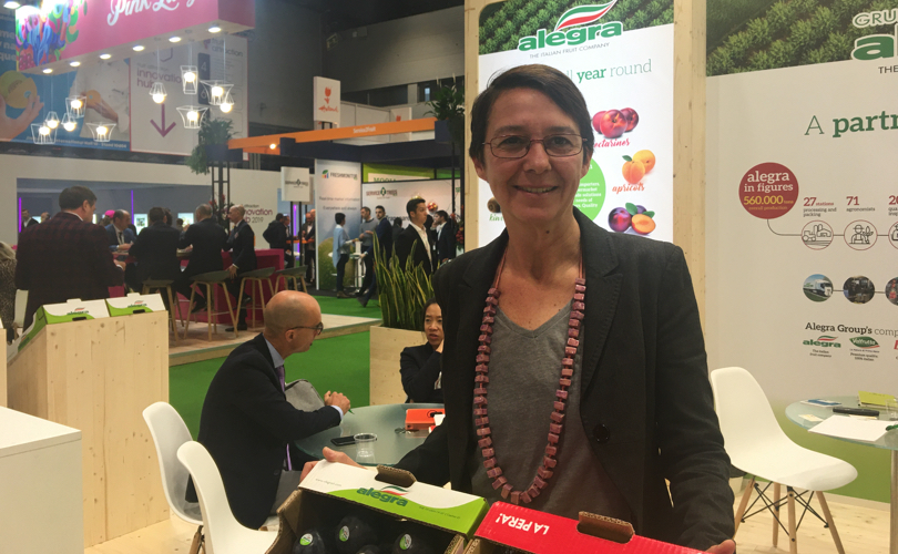 «La nostra è una presenza doverosa qui a Madrid. Fruit Attraction è diventata ormai una fiera internazionale, all'interno della quale incontriamo i rappresentanti della grande distribuzione, soprattutto quelli europei, anche se in agenda abbiamo fissato incontri anche con esponenti che vengono da più lontano», ci spiega Rita Biserni, responsabile delle attività di marketing internazionale di Alegra, business unit di Apo Conerpo. «Ormai le fiere sono dei grandi eventi di relazioni pubbliche: ci vediamo faccia a faccia, ci incontriamo, e questo è molto importante. Non necessariamente bisogna avere delle novità da proporre, anche perché esistono ormai altri mezzi per poterle comunicare durante l'anno».