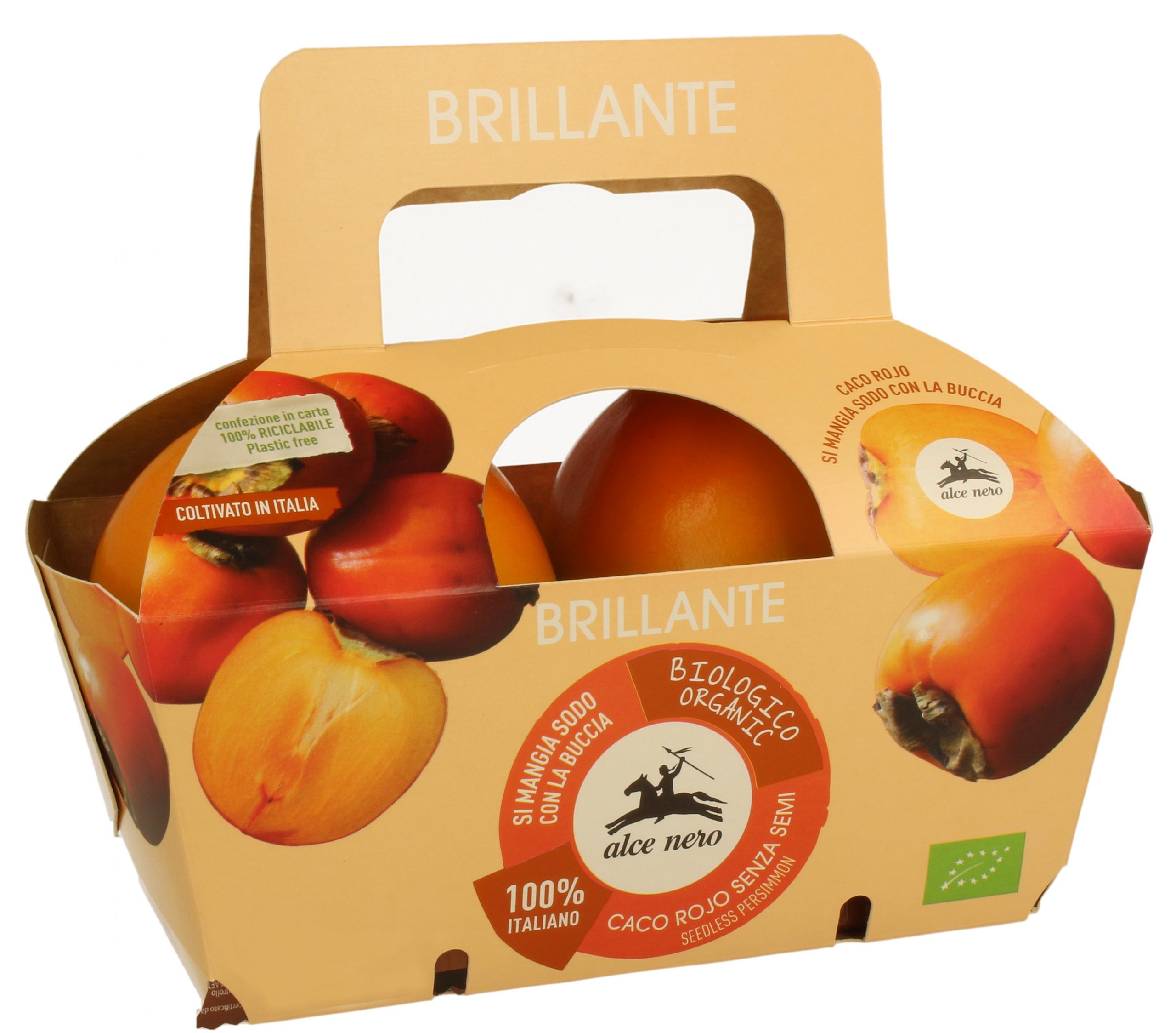 Porteremo sugli scaffali i cachi biologici Brio, come referenze di private label per i nostri clienti della Gdo, e il Rojo Brillante a marchio Alce Nero che sarà proposto in un pack plastic-free 100% riciclabile: la confezione, composta da una vaschetta con maniglie, accoglierà due frutti dal peso complessivo di 600 grammi”.
