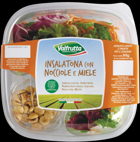 Con il marchio Valfrutta debutteranno poi le nuove insalatone complete di dressing composto da olio extra vergine d’oliva e aceto balsamico per facilitare il consumo anche fuori casa. “L’offerta comprende tre tipologie di insalate (con nocciole e miele, con olive taggiasche, con peperoni dolci e capperi) – spiega Stefano Soli, direttore generale di Valfrutta Fresco -, tutti mix gustosi di verdure fresche arricchiti da ingredienti selezionati di qualità premium, rigorosamente italiani, con abbinamenti decisamente innovativi. Ad arricchire l’ampia gamma di prodotti premium Valfrutta, anche il rinomato Radicchio di Chioggia IGP”.