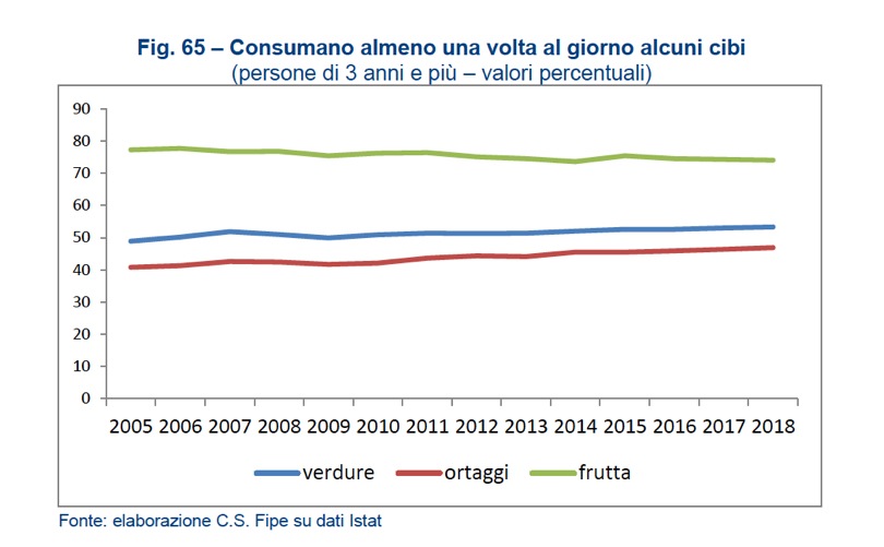 Non mancano naturalmente contraddizioni nelle risposte degli intervistati dell'indagine della Fipe, sempre sul fronte benessere & salutismo. Sebbene, infatti, la percentuale di chi “è consapevole del fatto che la nostra salute e il nostro benessere dipendono da ciò che mangiamo” rappresenta praticamente la totalità degli intervistati, solo il 53,3% dichiara di consumare verdure e ortaggi quotidianamente. Va un po' meglio con la frutta, con una percentuale che arriva al 74%. Tra le altre tendenze che emergono nel consumo fuori casa, il crollo del consumo della carne rossa (dal 73% al 59%), il calo del latte nonché di pasta e pane, stabili invece pesce e carni bianche.