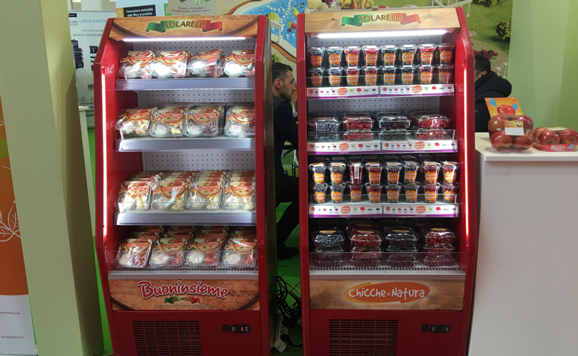 All'interno dello stand Apofruit non ha esposto prodotti di prima gamma ma altri ritenuti particolarmente innovativi. «Abbiamo concentrato la nostra attenzione su Violì, il carciofo italiano che è tra i dieci finalisti a Berlino al FLIA (vedi qui), la linea di piccoli frutti Chicche di Natura e la linea di IV gamma Solarelli Buoninsieme, con frutta e formaggio insieme».