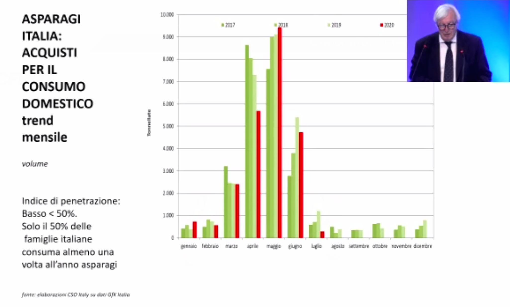 “L'asparago ha un basso indice di penetrazione del mercato, solo il 50% delle famiglie lo consuma almeno una volta all'anno. Lo scopo dell'International Asparagus Days (Rimini, 7-9 settembre 2021, in concomitanza con Macfrut) è anche fare crescere questa quota“. Con queste parole Luciano Trentini, esperto della filiera dell'asparago, è intervenuto alla conferenza stampa di stamattina tesa a fare il punto sull'organizzazione dell'evento di settembre. “Gli acquisti da parte del consumatore – ha aggiunto – sono concentrati in un periodo ridotto, da aprile a giugno. Dobbiamo ampliare il calendario produttivo per far crescere i consumi anche in autunno“.