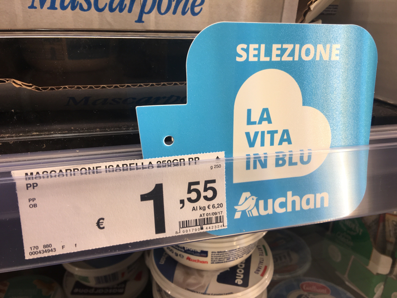Frutta e verdura fresca sono esclusi da questa iniziativa (anche perché sarebbero stati tutti necessariamente inclusi tra quelli con il bollino blu), ma tanti altri prodotti del fresco invece ovviamente sono stati presi in considerazione, o meno. Una lista dei prodotti aggiornata è sempre presente sul sito di Auchan (vedi qui).