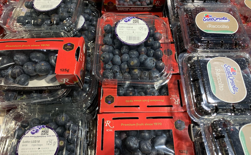 Per quanto riguarda i formati, poi, i mirtilli sono proposti perlopiù nella taglaia standard da 125 grammi, di rado in altri più grandi.