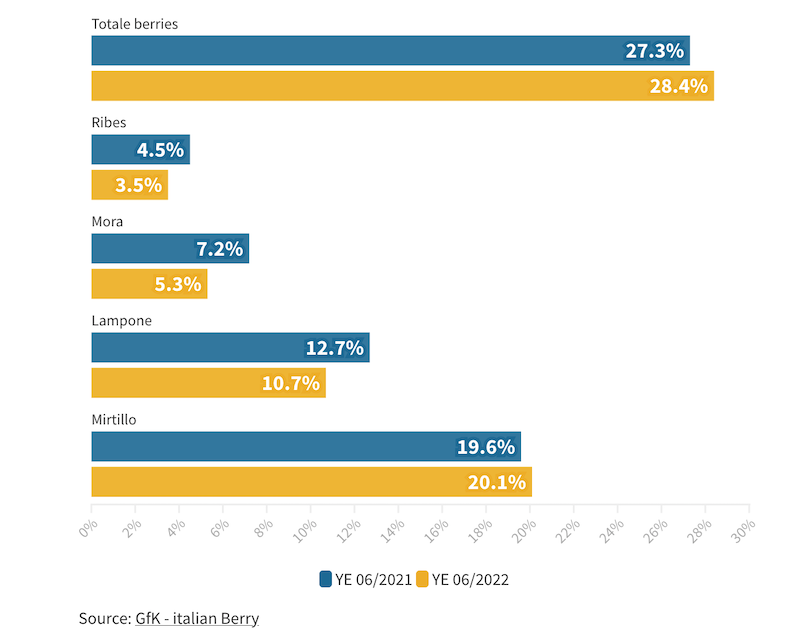 Non bene, se si pensa che nel Regno Unito la penetrazione dei soli mirtilli è superiore al 50%. Se più di 7 famiglie italiane su 10 non hanno mai portato in tavola i piccoli frutti significa che non li conoscono.