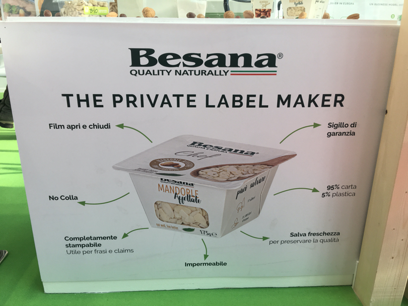Tra i tantissimi che l'azienda campana produce, particolare enfasi è stata data questa volta ad un nuovo imballaggio, completamente riciclabile all'interno della carta «È completamente compatibile con la nostra categoria merceologica che ha bisogno di una grande protezione e barriera perché soffre sia il caldo che l'umidità. Dopo tanto studio e ricerca siamo riusciti a trovare un prodotto che fosse compatibile con le nostre esigenze produttive e anche ambientali». Per ora Besana lo sta lanciando in Europa ed ora lo sta presentando anche in Italia. «È stato molto ben accolto: al suo interno è possibile confezionare praticamente tutto i nostro assortimento. È un packaging che si presta a prodotti naturali e biologici in modo ideale».