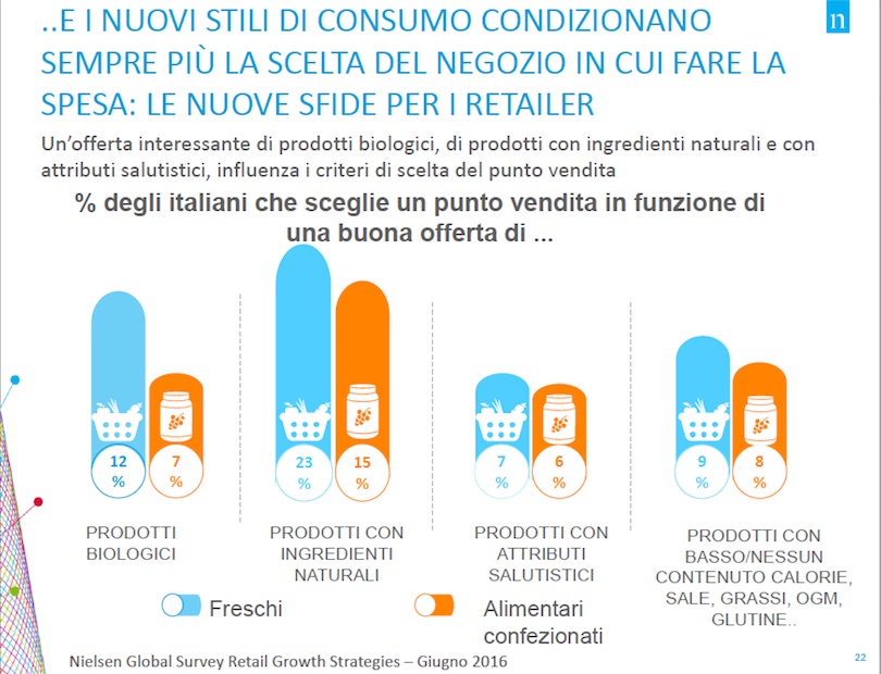 Il 55% degli italiani ritengono che i retailer non comprendano pienamente le loro preferenze sui prodotti. Se la domanda, quindi, continua ad evolversi molto velocemente, l’offerta risulta in ritardo. “Gli assortimenti che ci sono non tengono conto delle loro reali esigenze – ha sottolineato De Carne -. Ormai i clienti scelgono l’insegna anche in base al fatto che ci siano prodotti naturali o biologici in vendita”.