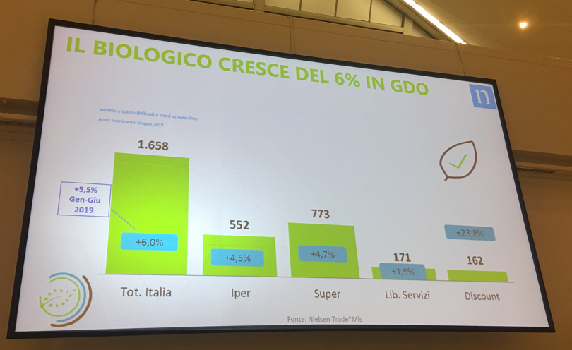 Nei primi sei mesi del 2019 le vendite sono aumentate del 6%, pari a 1,7 miliardi di euro. Se il canale dei supermercati è quello più importante (773 milioni di euro), quello che cresce di più è il discount: +23,8% (162 milioni di euro). Segno evidente del desiderio di acquistare prodotti “naturali”, in linea con le tendenze di mercato, anche se a prezzo più basso.