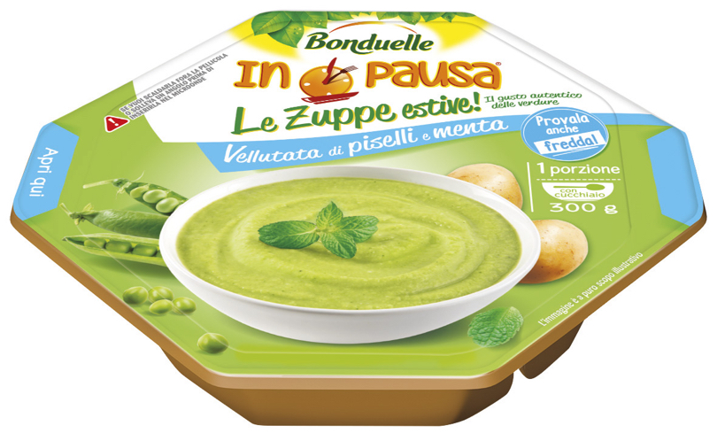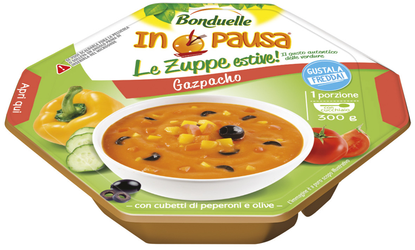 La seconda novità riguarda le zuppe con il lancio de “Le Zuppe Estive!”: due nuove referenze – Gazpacho e Vellutata di Piselli e Menta – che sempre dal mese di maggio sostituiranno quelle della gamma invernale, e sono vendute in pack monoporzione da 300 g con cucchiaio incluso.