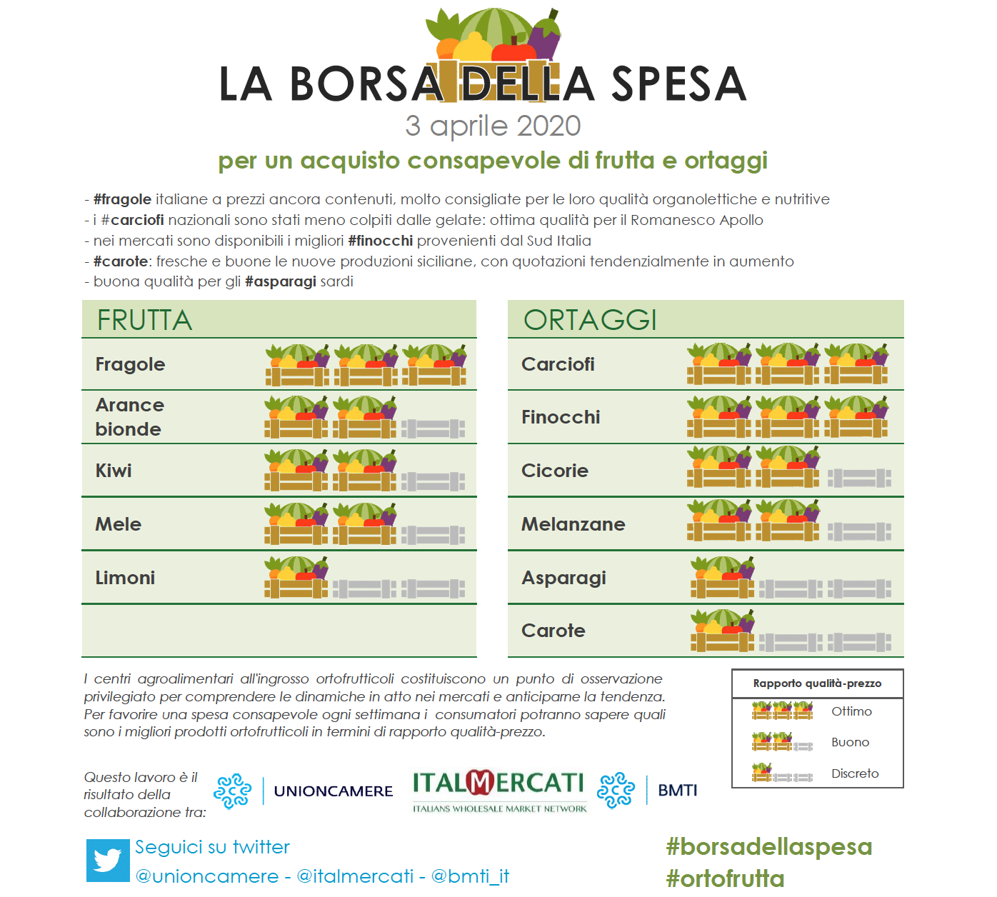 Grazie a Italmercati e Unioncamere i consumatori hanno a disposizione “La Borsa della Spesa” per un acquisto consapevole di frutta e ortaggi anche in questo periodo.
