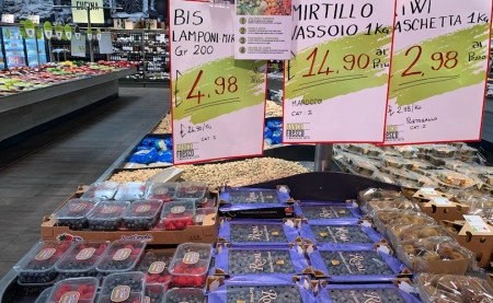 Qualità su livelli medi. More costose, mirtili e lamponi no. Non solo 125 grammi per le confezioni