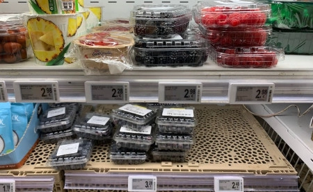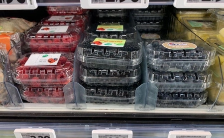 Rilevante l’assortimento, ma con meno brand e fornitori. Per i mirtilli tornano i formati “maxi”