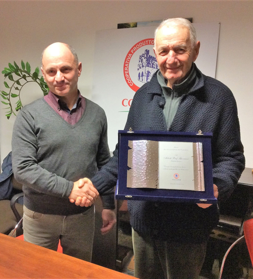 Al termine dell'assemblea, infine, il presidente Francesco Rastelli, a nome di tutti i soci, “ha consegnato al presidente onorario prof. Giovanni Melodi una targa ricordo per riconoscergli il merito e per ringraziarlo del lavoro svolto a capo della Cooperativa fin dalla nascita della stessa. Il prof. Melodi commosso, ha passato il “testimone” ai giovani, augurando loro buon lavoro ed esortandoli a proseguire quanto finora fatto dalla Cooperativa nel campo della ricerca e del mantenimento in purezza dell’Aglio Bianco Piacentino”.
