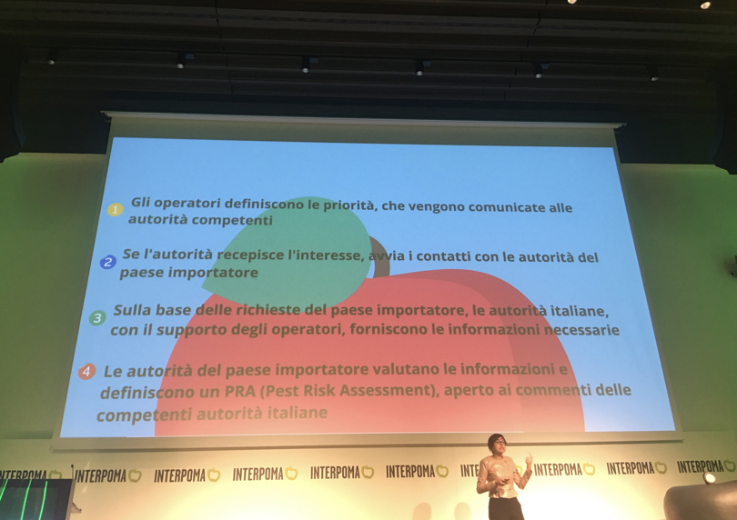 Giulia Montanaro di Assomela nella sua relazione ha illustrato le caratteristiche di alcuni Paesi con i quali l’Italia ha in essere dei dossier aperti per cominciare ad esportare mele e che potrebbero rappresentare delle opportunità interessanti per i produttori italiani. Ma con un’avvertenza: i tre attori del processo che consentono l’apertura di un potenziale mercato – gli operatori del settore, le istituzioni nazionali ed europee e quelle degli stati importatori – devono andare tutti alla stessa velocità, altrimenti il processo va a rilento o addirittura si ferma.