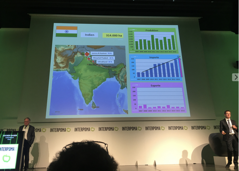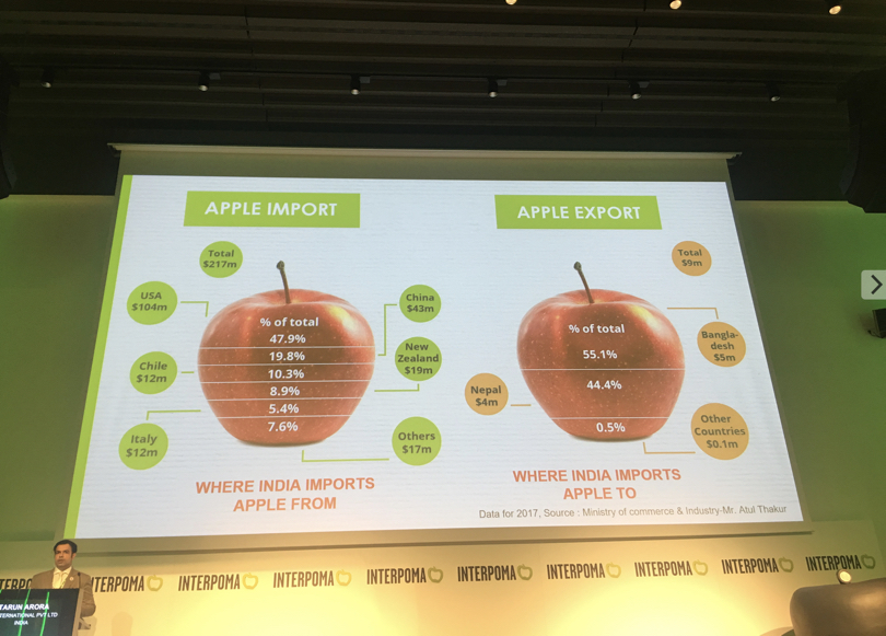 Le poche mele coltivate qui, a causa delle basse rese costano praticamente più di quelle importate. Secondo Tarun Arora per i produttori europei l’India è un’opportunità concreta perché i tempi di spedizione sono inferiori agli Stati Uniti (30 giorni contro 70) e il moderno retail si sta sviluppando sempre di più e con esso politiche di marketing e comunicazione nel punto vendita, sebbene il canale tradizionale fatto di mercati e ambulanti continui ad essere fondamentale.
