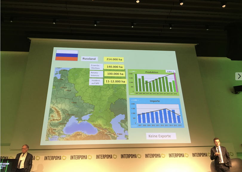 Qui sotto, ad esempio, una parziale galleria fotografica dello stato dell’arte di molti paesi dell’Est europeo e dell’Asia mostrate da Jochen Kager, Direttore Generale Europa, & Medio Oriente di AgroFresh e Kurt Werth, consulente e grande esperto dello scenario melicolo internazionale, rende bene l'idea di quanto sia diversificato e non semplice da affrontare quella parte di mondo a est dell'Italia.