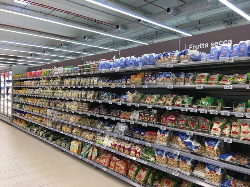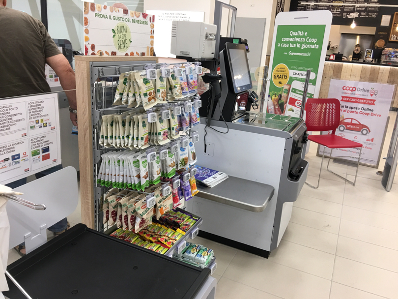 Ovviamente l'occhio di riguardo verso le nuove tendenze alimentari non manca, con un'area benessere dedicata ai prodotti “senza” e veg e dove spicca anche un frigorifero nel quale troviamo, ad esempio, i burger vegetali. Nelle avancasse il concetto di benessere continua con un assortimento incentrato anche su frutta secca, disidratata e barrette ai cereali.