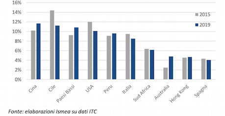 Il capitolo export, quindi, merita di essere analizzato a fondo: tra i paesi esportatori, l’Italia si colloca al sesto posto a livello mondiale con spedizioni per circa 635 milioni di euro, preceduta, tra gli altri, dagli Usa e dal Perù.