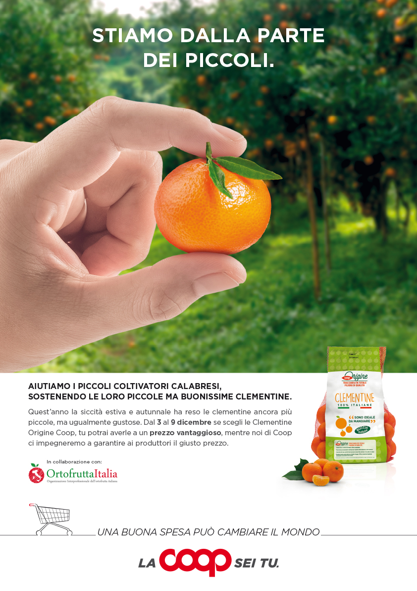 Un prezzo di acquisto giusto in grado di coprire i costi di gestione e la disponibilità a dare visibilità in reparto ai frutti più piccoli ma ugualmente gustosi. Ecco in sintesi l'operazione straordinaria messa in atto da Coop Italia per fronteggiare la crisi del comparto delle clementine calabresi.