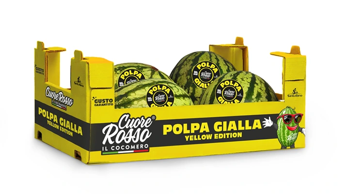 La struttura è quella già consolidata dalla cooperativa, mentre la grafica si distingue per i due colori, mantenendo l’impostazione visiva della linea. "C’è assoluta continuità con il resto del packaging aziendale perché rimangono invariati gli elementi che definiscono l’identità della linea: la disposizione del brand Cuore Rosso, lo stile grafico, la presenza del marchio San Lidano e il carattere visivo del personaggio - sottolinea Pinti - Questo permette di distinguere le varietà senza perdere coerenza con il resto della gamma".