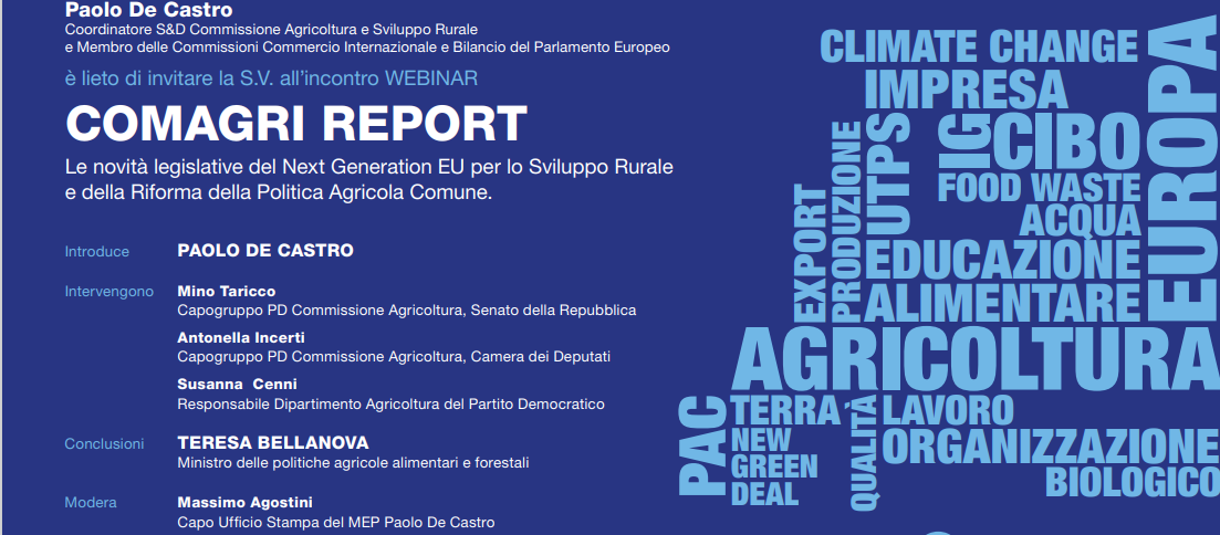 Gli aiuti straordinari per affrontare le conseguenze del Covid sono stati approvati e, su 10 miliardi di euro a disposizione, 1,22 sono per l'Italia. Sono risorse per tutelare la filiera agricola, ma serve il co-finanziamento statale per aumentare l'efficacia degli interventi. Questo il messaggio lanciato dall'europarlamentare Paolo De Castro durante la presentazione, in un webinar on-line, del Comagri Report 2020. Un'occasione per fare il punto sulle ultime novità legislative del Next Generation Eu per lo sviluppo rurale e la riforma della Politica agricola comune (Pac).