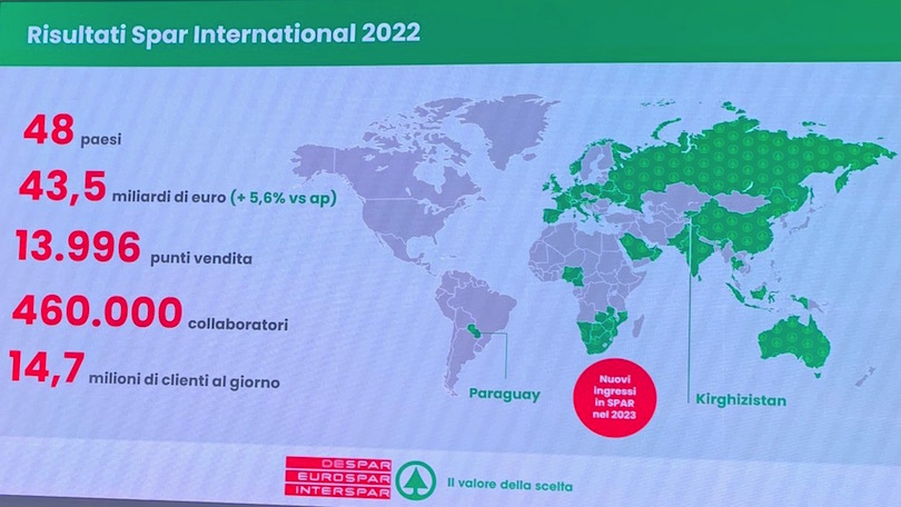 Despar Italia, con sede a Bologna, è parte del Gruppo Spar International. Fondato in Olanda nel 1932, ha chiuso l’anno 2022 con un fatturato complessivo di 43,5 miliardi (+5,6% sul 2021) e nel 2023 è entrato in due nuovi paesi, il Paraguay e il Kirghizistan. Sono 48 i paesi in cui opera, per un totale di 460mila collaboratori e quasi 14mila punti di vendita.
