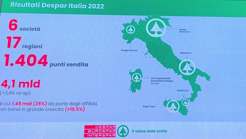 In Italia Despar opera con sei società e tre insegne – Despar, Eurodespar e Interspar – ed è presente in 17 regioni italiane, per un totale di 1.404 punti di vendita.