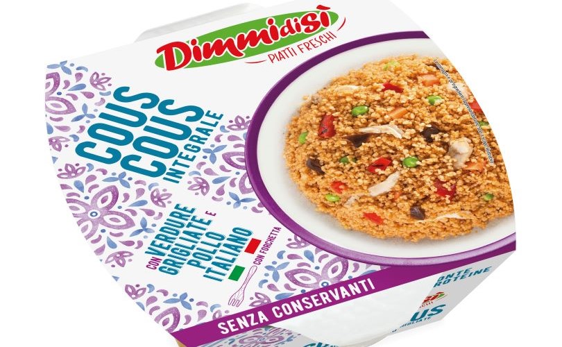 Anche la gamma dei Piatti freschi è stata ampliata con due nuove ricette. Protagonista della prima proposta è il cous cous, fra i cereali più utilizzati per i piatti freschi pronti. DimmidiSì lancia una versione particolarmente ricca e gustosa: il Cous cous integrale con verdure grigliate e pollo marinato. Una ricetta con un’identità ben definita e un carattere unico, che la rende distintiva a scaffale. L’insalata di fregola tostata con verdure e pesto rosso sposa la versione più pregiata e saporita della fregola sarda, quella tostata, con succose melanzane grigliate e noci croccanti. Ad amalgamare il tutto un pesto rosso preparato con polpa e concentrato di pomodoro, basilico fresco e Grana padano.