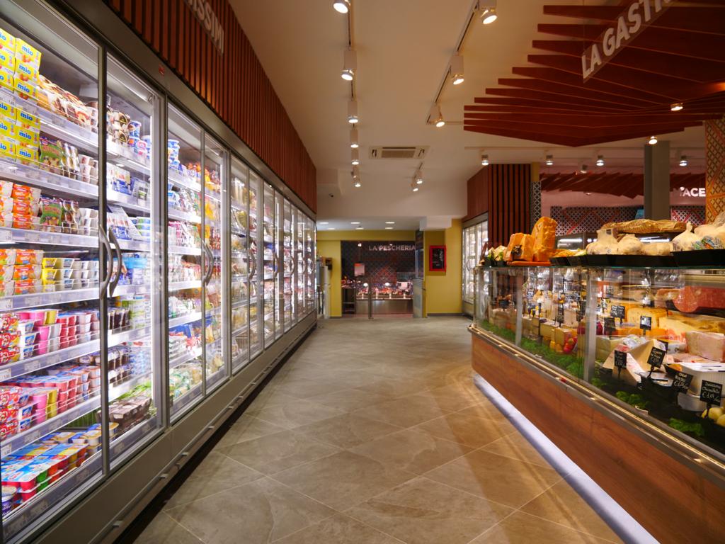 Il piano terra è il regno del fresco: qui il consumatore può godere di una shopping experience assolutamente variegata, dalla macelleria alla pescheria, passando per l’ortofrutta. Quest’ultima vanta un particolare servizio “su misura”, grazie al quale è possibile acquistare frutta e verdura fresca tagliata al momento, per il fabbisogno anche di un solo pasto, magari da consumare durante una gita in barca o una colazione sulla spiaggia. Inoltre, ruolo centrale è recitato dalla gastronomia con cucina, che permette la possibilità di acquistare piatti da asporto, cucinati con materie prime di riconosciuta qualità, quali ad esempio la pasta di Gragnano Igp, oltreché il meglio delle specialità e delle denominazioni d’origine tipiche del territorio.