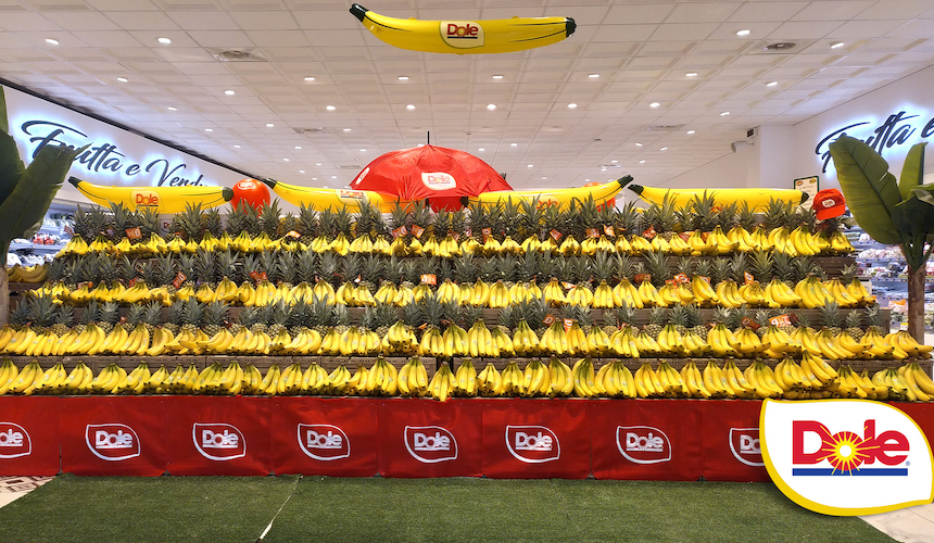 Una avvincente competizione che ha coinvolto direttori e responsabili dei reparti ortofrutta degli store e che si è conclusa, dopo un'attenta e lunga valutazione delle varie proposte, con la consegna del Certificato di Eccellenza 2022 Dole Italia a Massimiliano Castellucci e Emanuele Abblasio, rispettivamente direttore e caporeparto del punto vendita vincitore. Motivazione del premio assegnato “Ampio e curato spazio espositivo in grado di esaltare con semplicità e forte impatto visivo l'alta qualità, la bontà e le caratteristiche uniche delle Banane Premium Dole”.