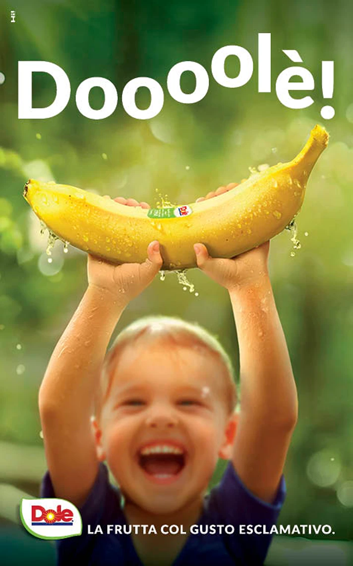 Bambini aggiunge: “Esultanza che si ha allo stesso modo quando si citano tutti gli altri aspetti da sempre legati al marchio e ai prodotti Dole, ossia la lunga expertise, il rispetto dei più elevati standard di certificazione internazionali, la trasparenza e il completo controllo dell’intera filiera, i progetti di Csr, l’efficienza del servizio offerto ai clienti”.