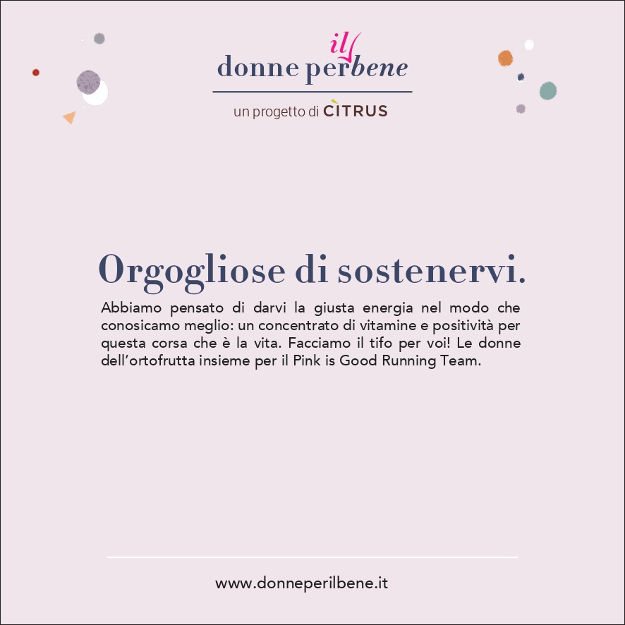 “Per dare ancora più energia alle grintose pink runner e far sentire la vicinanza e il tifo di tutte le donne della filiera ortofrutticola, sono state inviate vitamine e positività in pieno stile ortofutta: con limoni non trattati in superficie – si legge in una nota dell'Associazione de Le donne dell'ortofrutta – Per ricordare ancora una volta l’importanza della prevenzione e del finanziamento alla ricerca scientifica d’eccellenza di cui, soprattutto in questo periodo, si è compresa la fondamentale necessità, durante la staffetta le pink ambassador saranno impegnate nella raccolta fondi con un’attività di crowdfunding attraverso la piattaforma Rete del Dono. Come donne dell’ortofrutta ci uniamo al messaggio di queste coraggiose donne, impresso sulle magliette del Running Team 2020, Niente ferma il rosa, niente ferma le donne”.