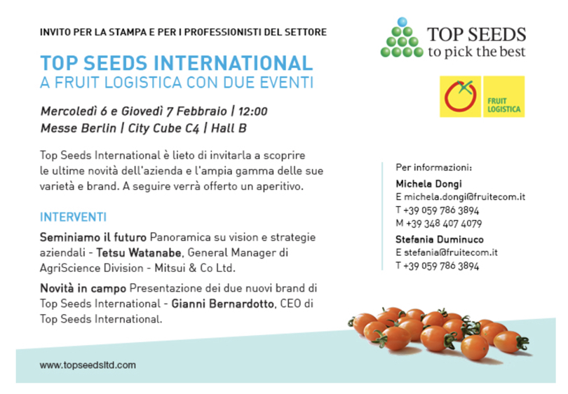 Top Seeds International società internazionale specializzata nella ricerca e commercializzazione di innovative varietà ibride di ortaggi di alta qualità, fa il suo debutto a Fruit Logistica 2019.