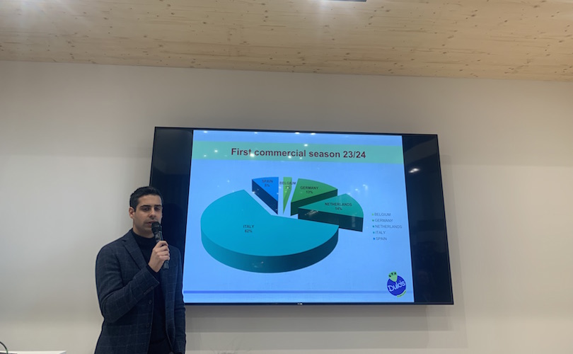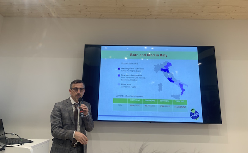 “Oggi la produzione di Dulcis si estende su circa 150 ettari, per un totale produttivo di 298 tonnellate – ha riferito Marcello Guidi, responsabile mercato estero del Gruppo – Ma l’obiettivo di crescita su scala quinquennale prevede di raggiungere, entro la stagione 2027-28 quota 9.425 tonnellate, con oltre 500 ettari in produzione”.